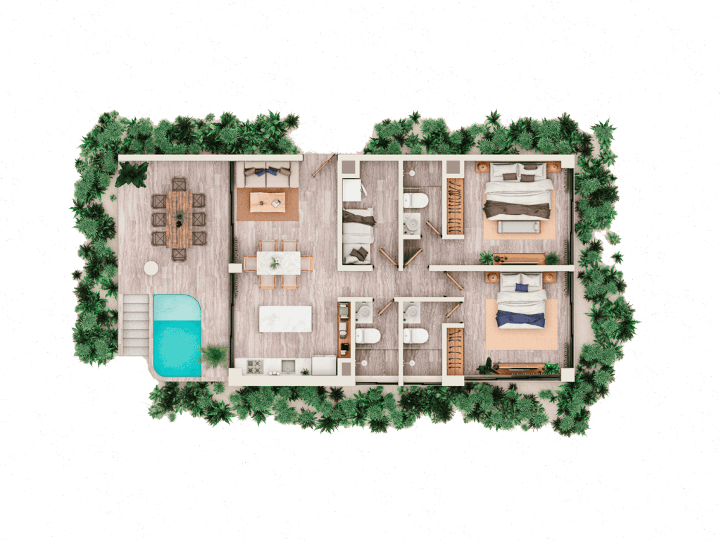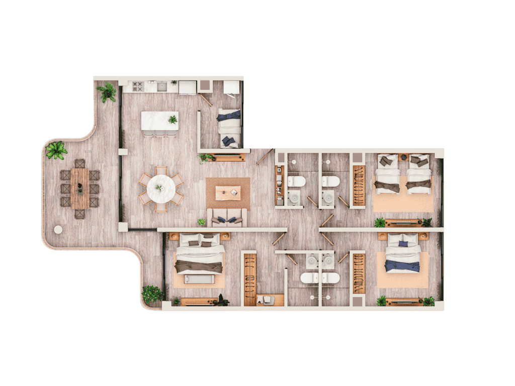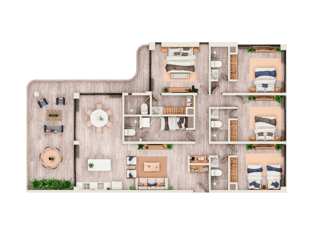 Our location, surrounded by activities, allows you to flow to the rhythm of the waves while enjoying wide spaces in 2, 3 or 4-bedroom apartments, whose finishes respect the laws of natural luxury.